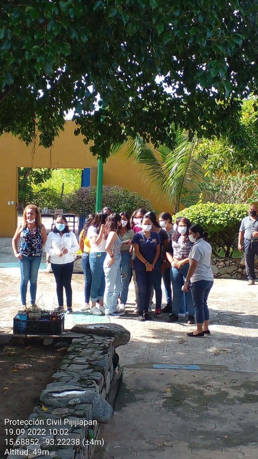 #SimulacroNacional2022 En la Escuela de Humanidades Campus IX, la comunidad universitaria participo activamente y de forma organizada cumpliendo los protocolos correspondientes, en el EVENTO DE SIMULACRO 2022; así mismo se integraron personal directivo, docentes y administrativos; el evento estuvo supervisado por personal especializado del área de PROTECCION CIVIL del municipio de Pijijiapan, Chiapas.