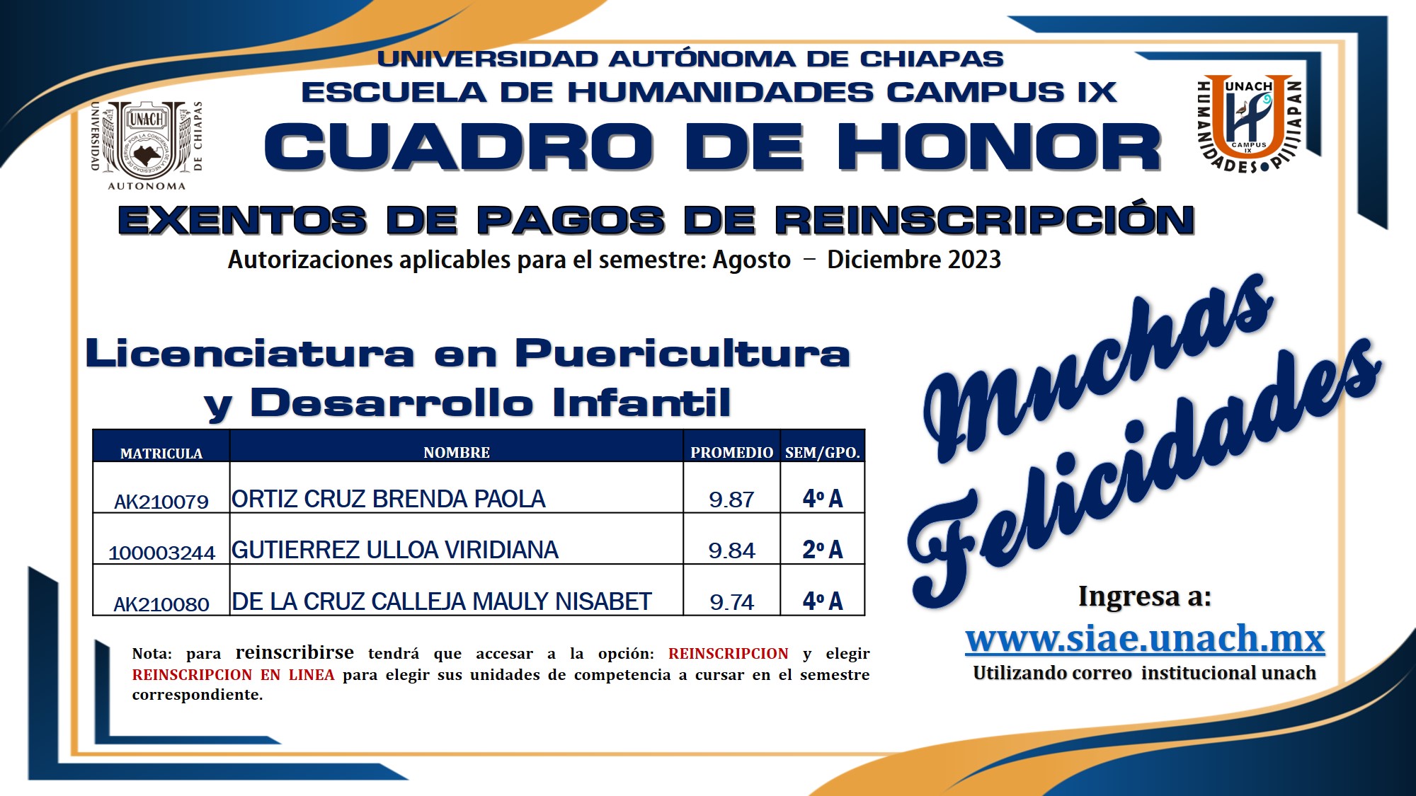 Cuadro de Honor Licenciatura en Puericultura y Desarrollo Infantil