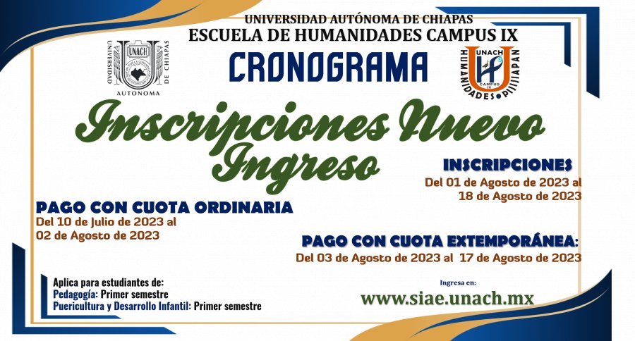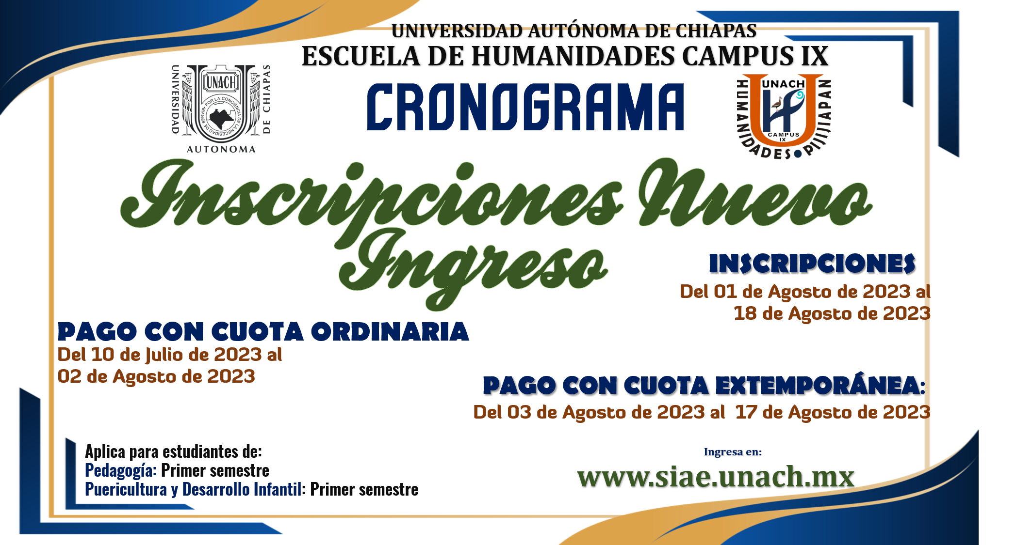 Cronograma de Incripciones para alumnos de Nuevo Ingreso Agosto -Diciembre 2023