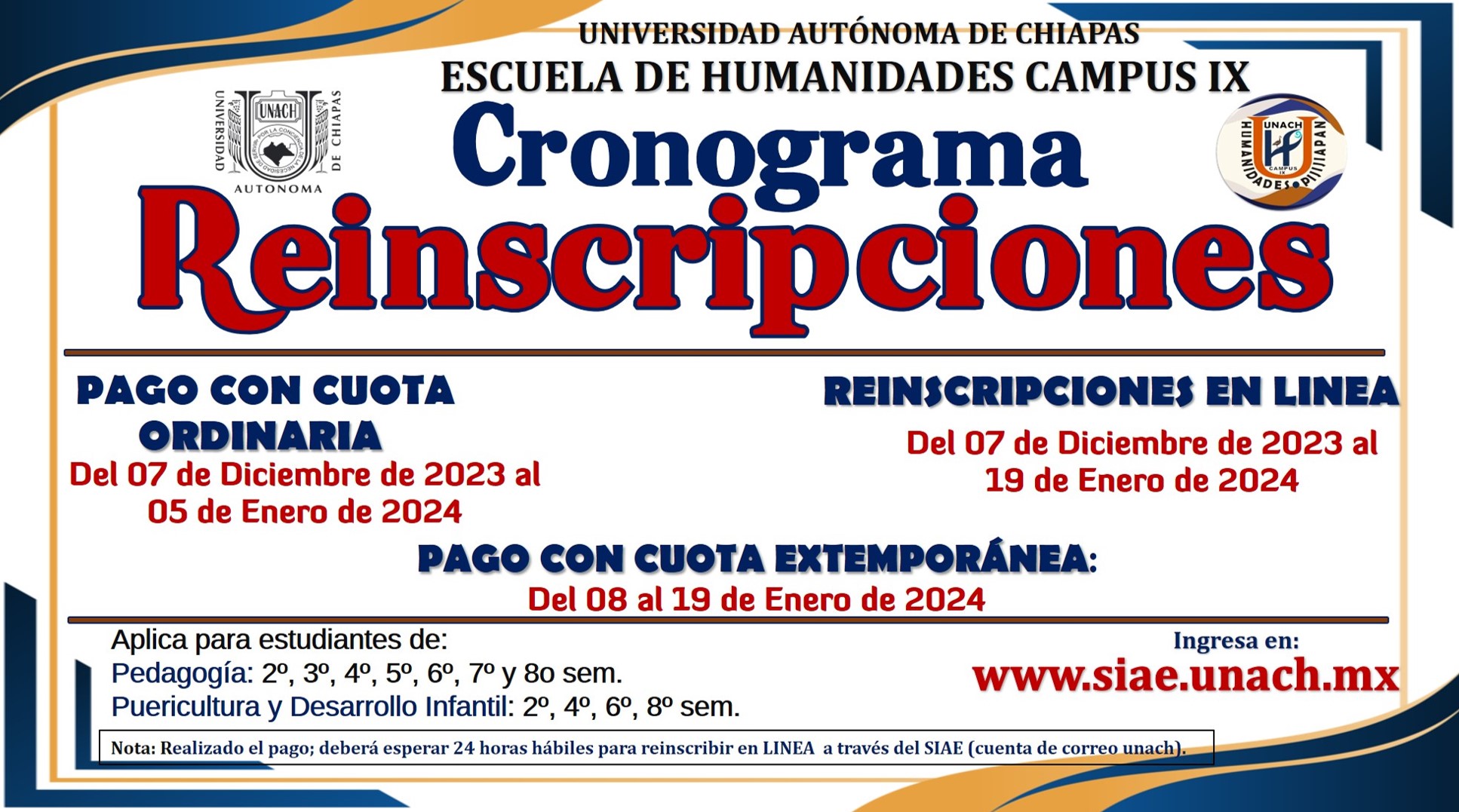 Cronograma de Reinscripciones periodo enero - junio 2024