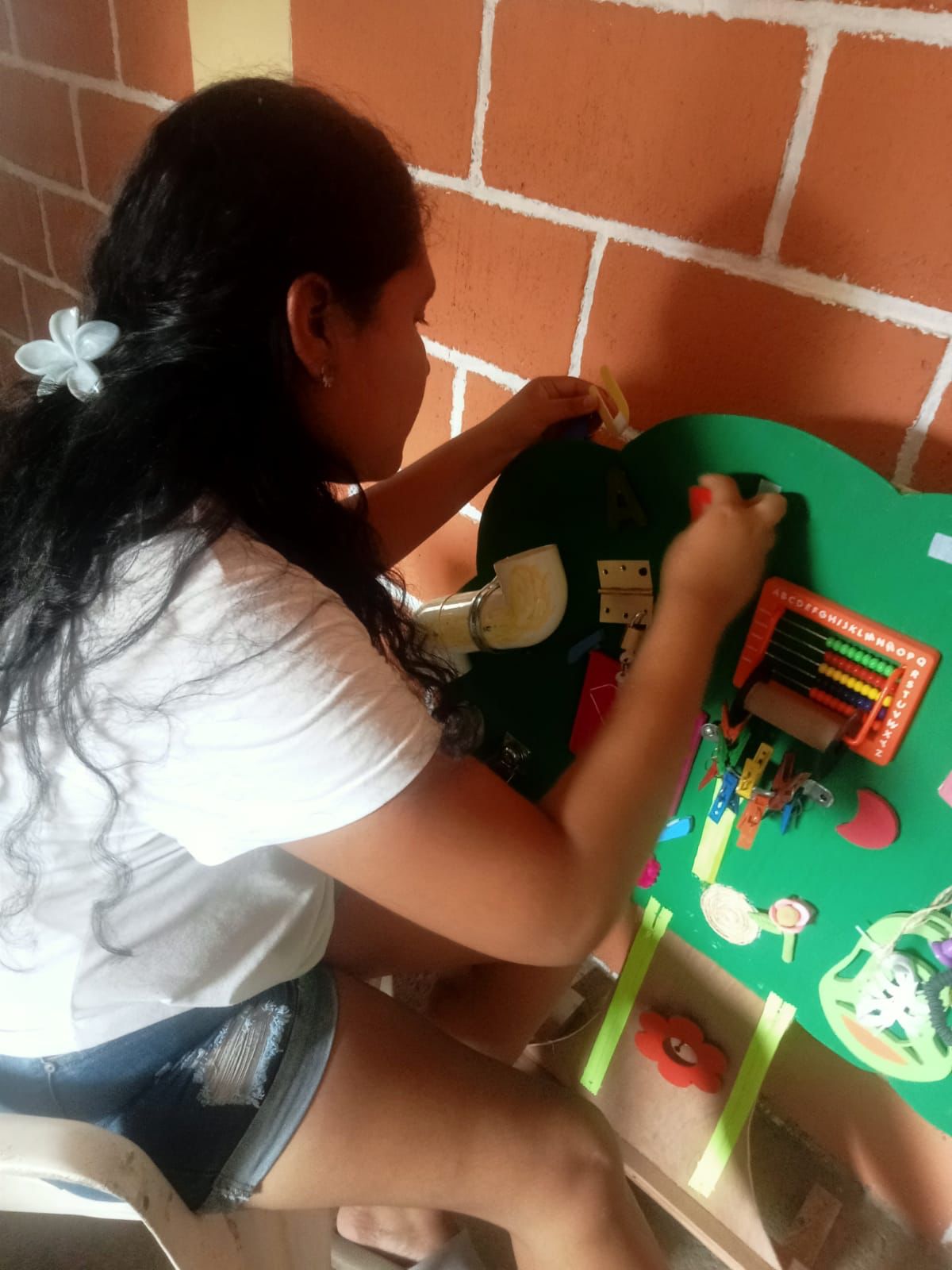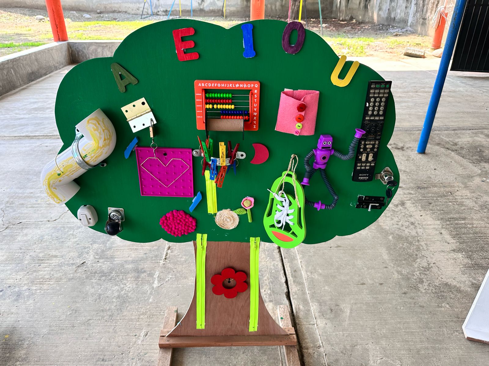 Objetivo: Capacitar a los estudiantes en la creación de tableros sensoriales, con la finalidad de desarrollar habilidades cognitivas y motoras de los infantes.