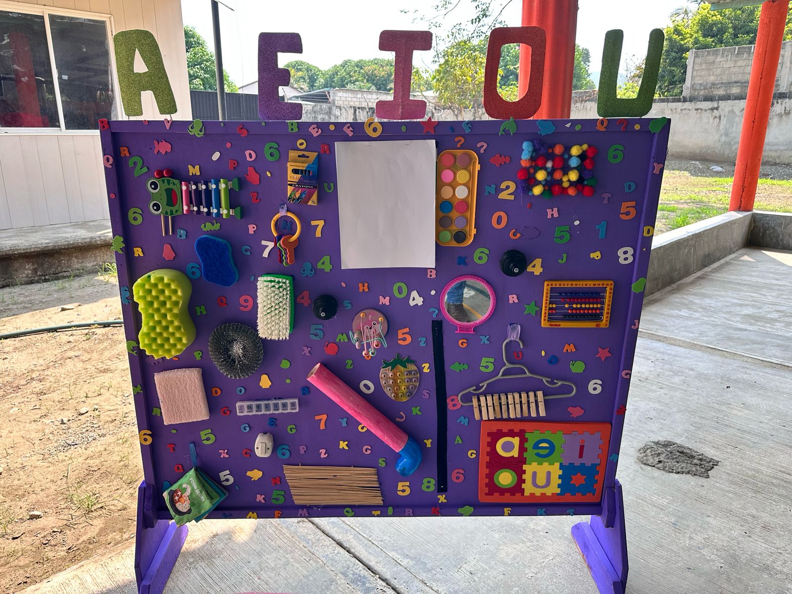 Taller: “Creación de tableros Sensoriales”, realizado en las instalaciones de la Escuela de humanidades Campus IX, y aplicado en el Jardín de Niños y Niñas “Lucas Balderas” de la col. El llanito municipio de Pijijiapan, Chiapas; el día 14 de Mayo de 2025.