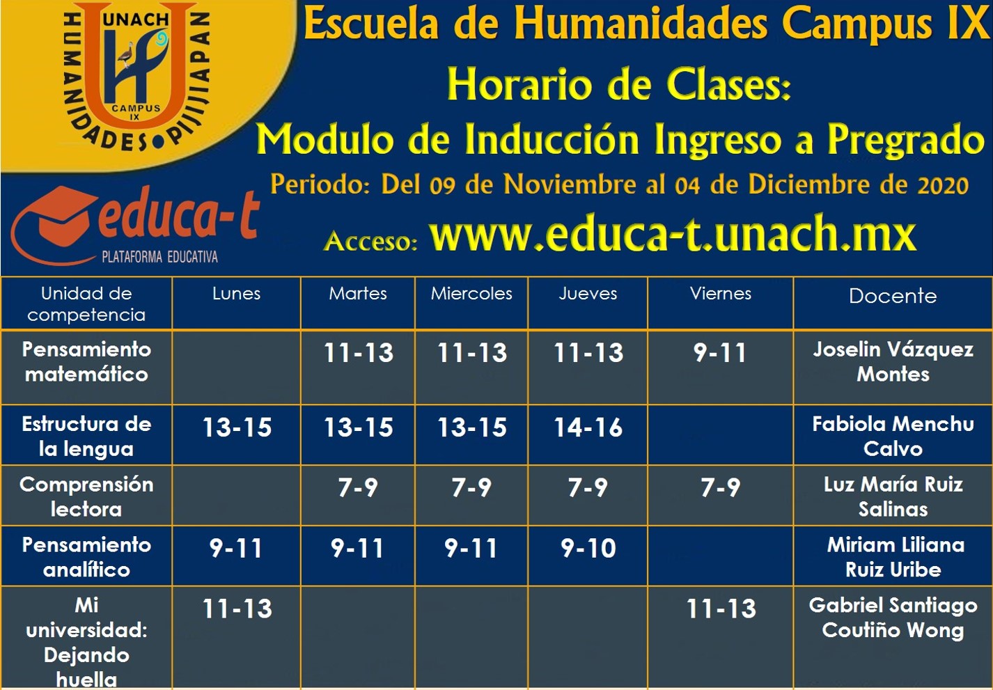 Horario Modulo Inducción para Nivel Pregrado