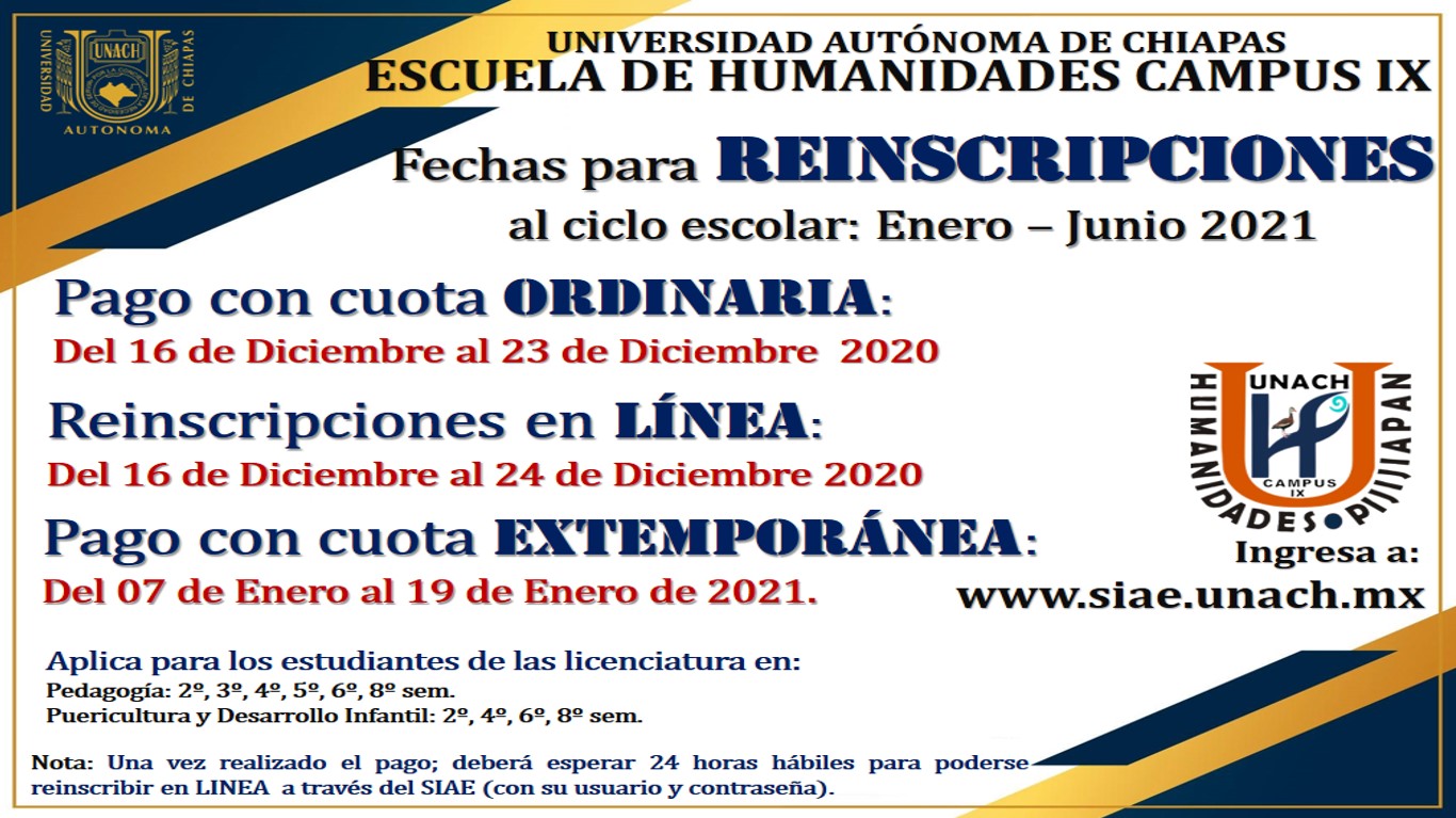 Proceso de Reinscripciones periodo Enero - Junio 2021