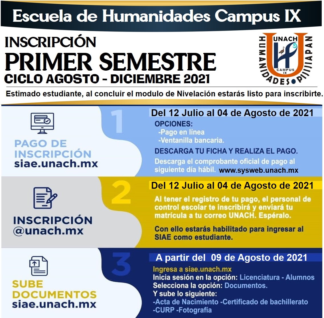 Proceso de Inscripción a Primer semestre ciclo agosto - diciembre 2021