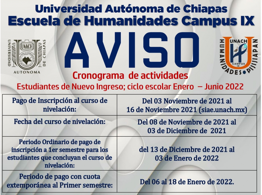 Cronograma para Inscripción al Modulo de Nivelación Nuevo Ingreso Enero - Junio 2021