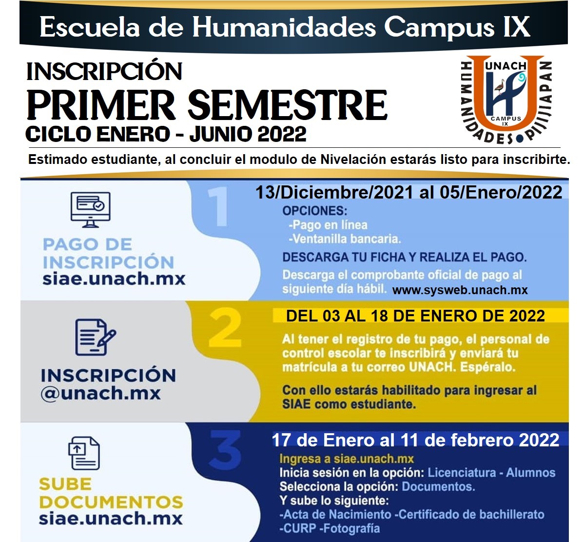 Cronograma para alumnos de Nuevo Ingreso Enero - Junio 2022