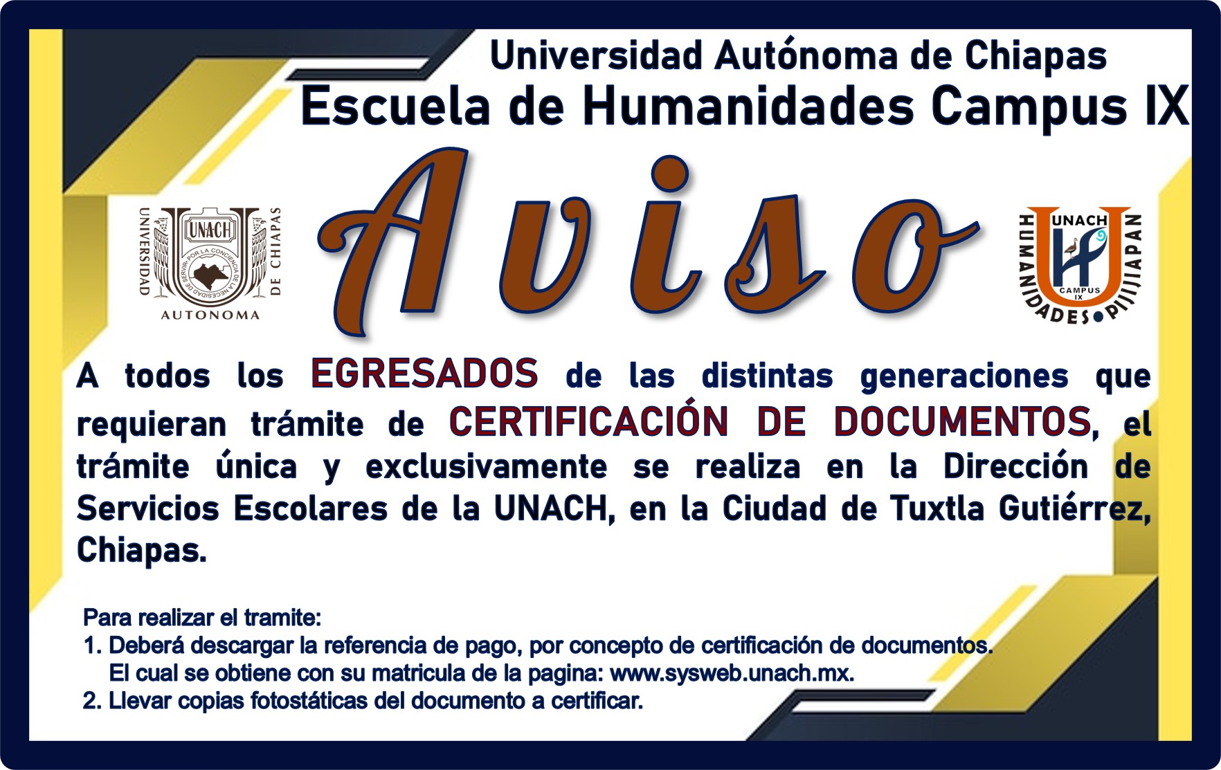 Aviso para proceso de Certificación de Documentos